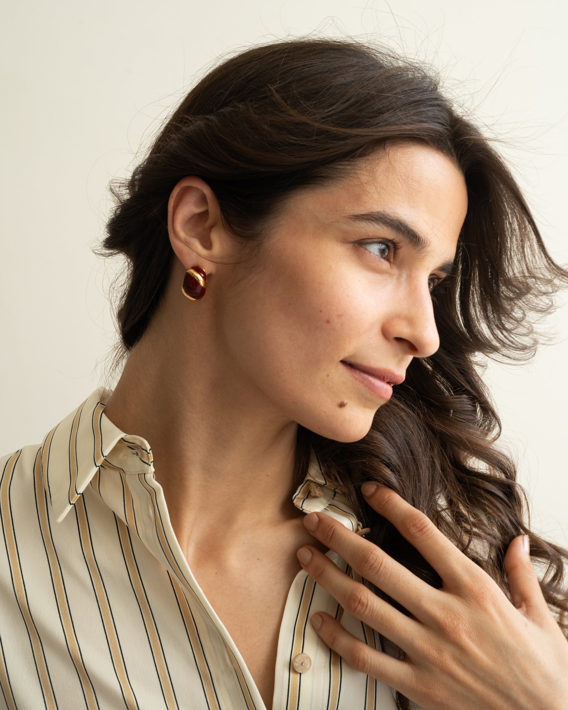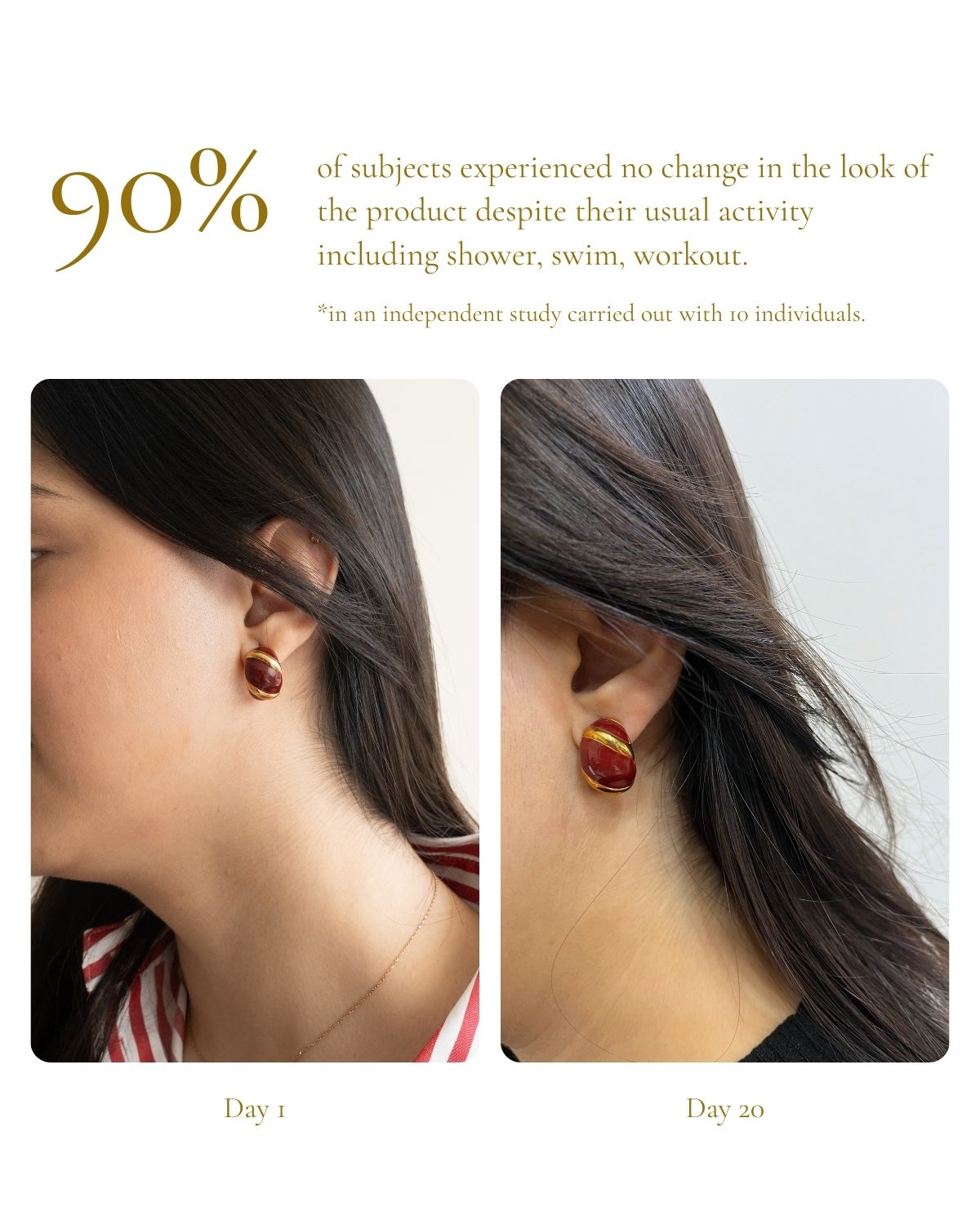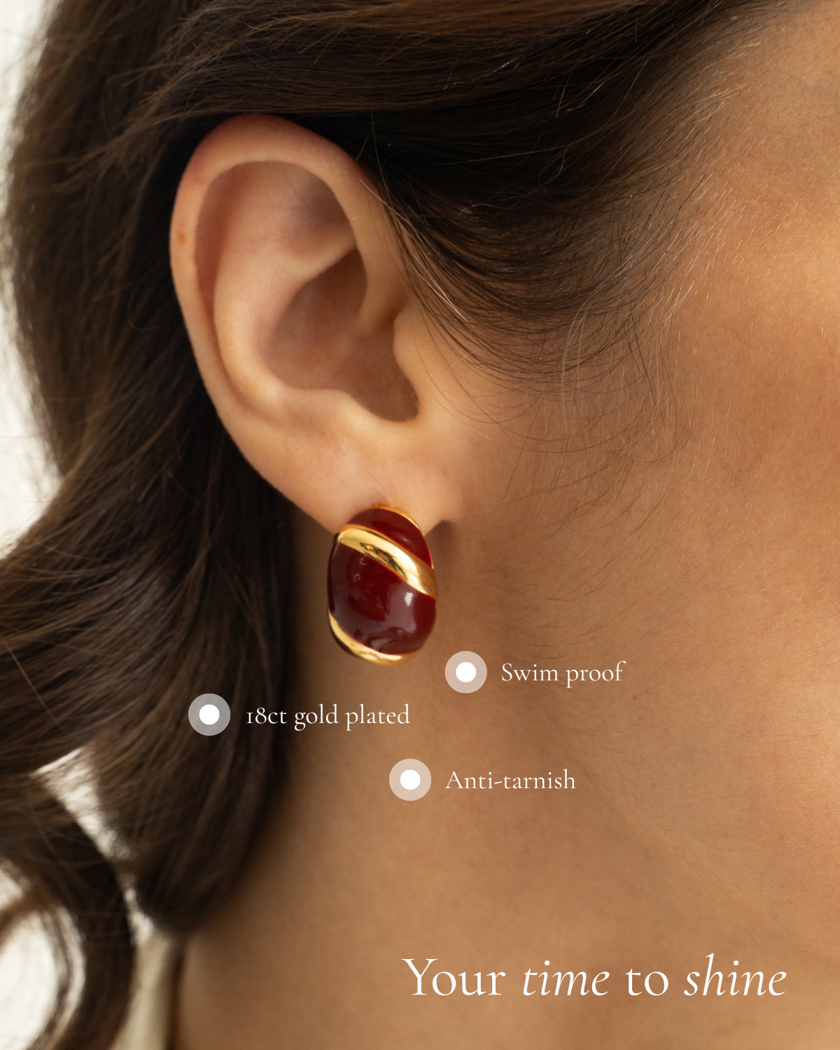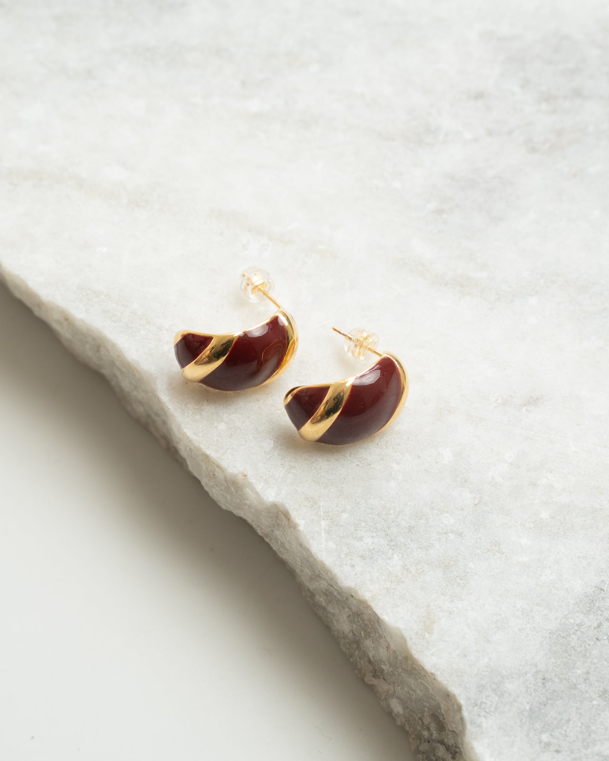 The Twirl studs feature effortless twirls of Maroon enamel & gold-plated accents set in a chic stud design.