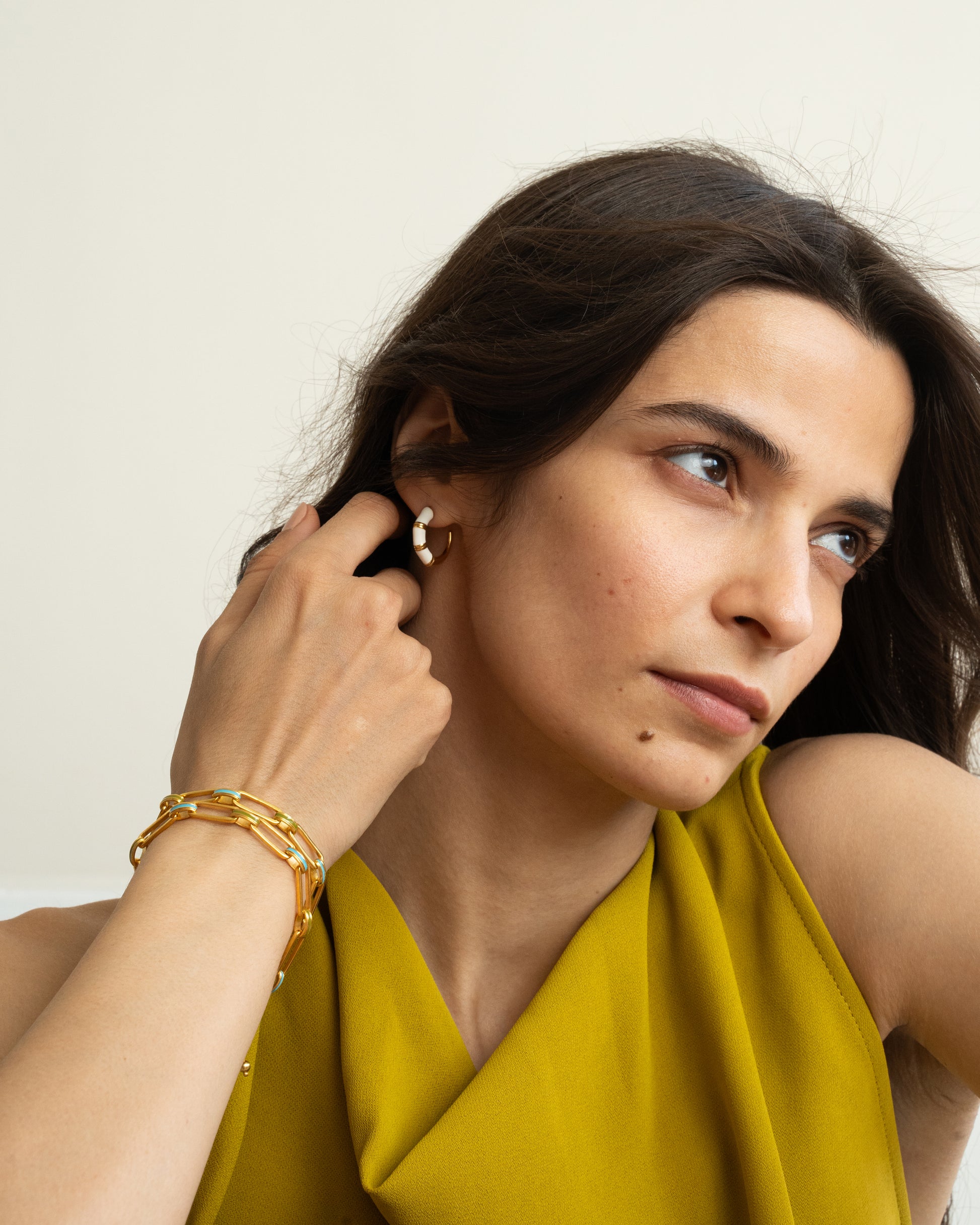 Each piece is handcrafted by our artisans in high-grade stainless steel. Our earrings are handcrafted in modern meenakari and come packaged in our signature gift box, making them the perfect gift.